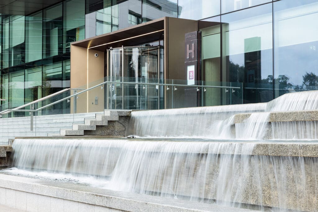 This building features a full-height atrium that creates a light-filled reception area and ensures ample natural light on every floor.