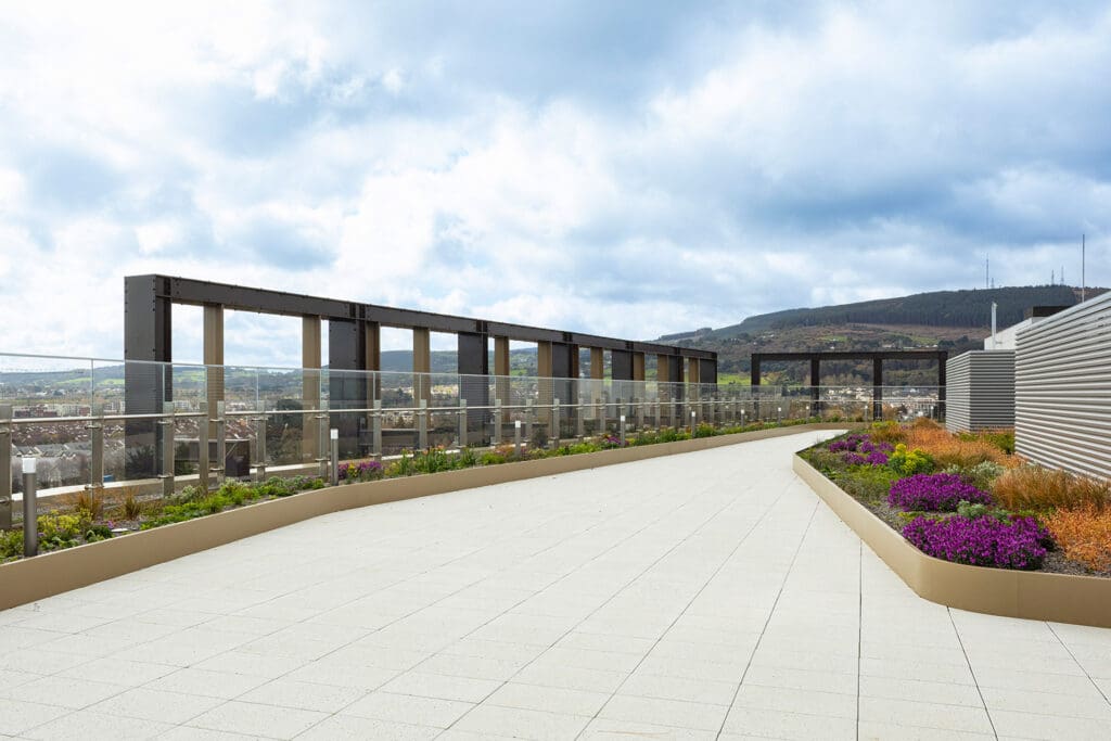 Boasting a breathtaking triple-height reception, panoramic lifts, and a communal roof garden with 360º views of the Dublin Mountains and Dublin Bay. It has achieved LEED Gold, BER A3, and NZEB compliance.